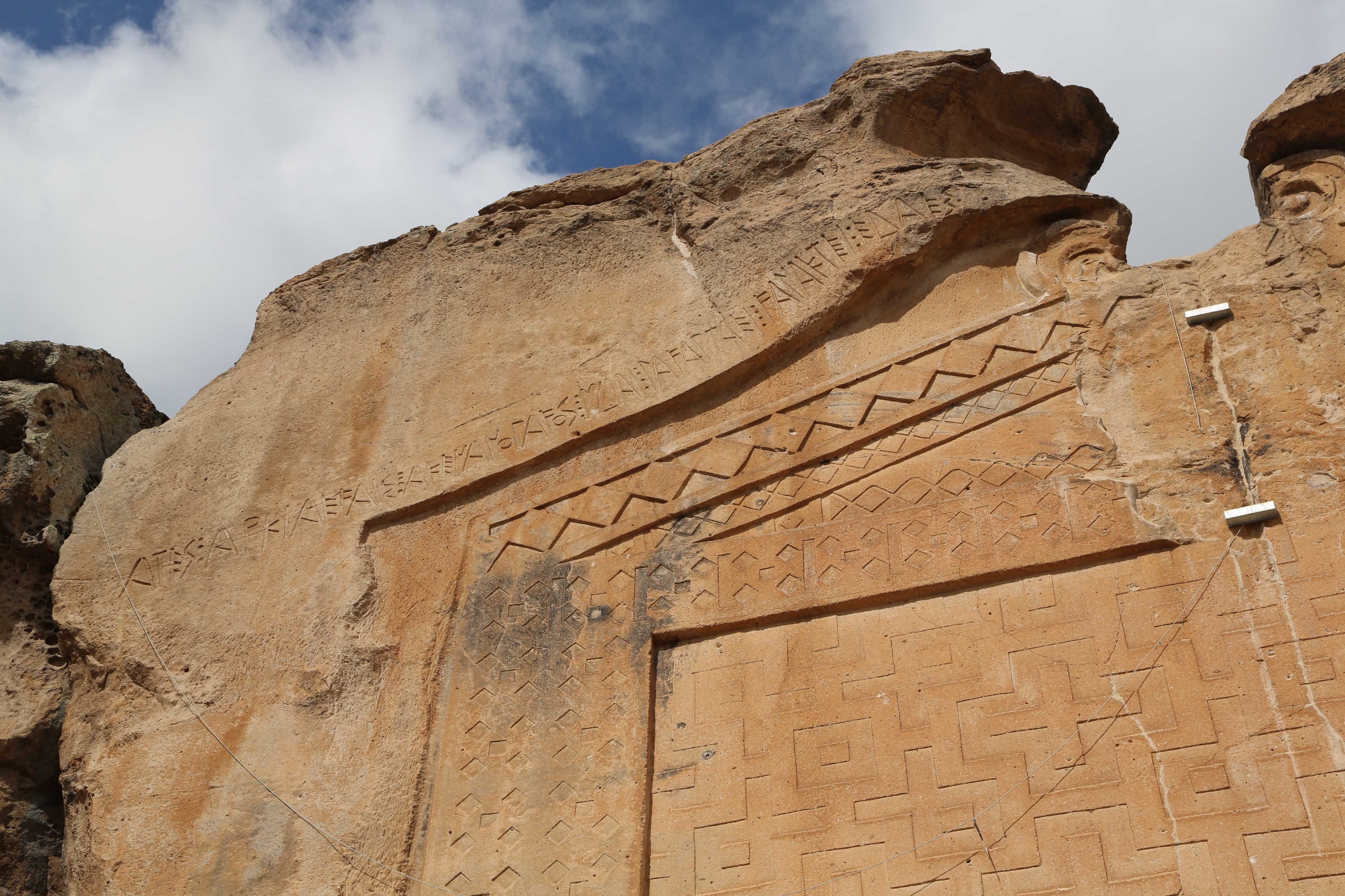 Anıtın sol üst kısmında, düzleştirilmiş ana kaya üzerinde soldan sağa doğru yazılmış olan yazıt vardır.